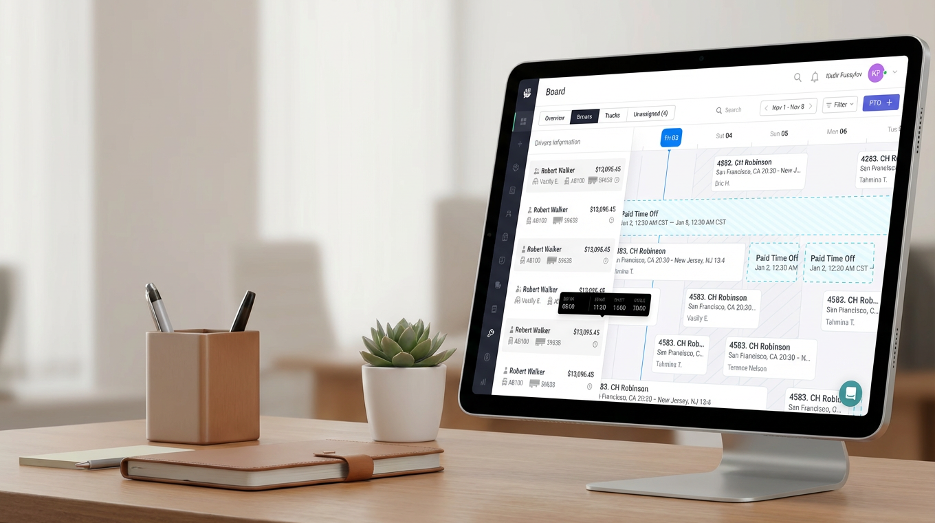 The TenTrucks TMS takes the guesswork out of dispatching. See your true margins in real-time, use a board so simple your team can learn it in minutes, and let our smart AI catch costly mistakes before they hit your bottom line.