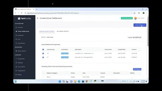 Absolutely. TenTrucks includes a comprehensive driver settlement module that calculates pay based on miles, percentage, or flat rates. You can generate settlement reports, track deductions, and process payments all within the platform.